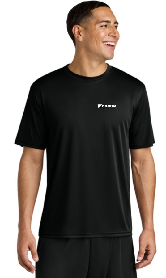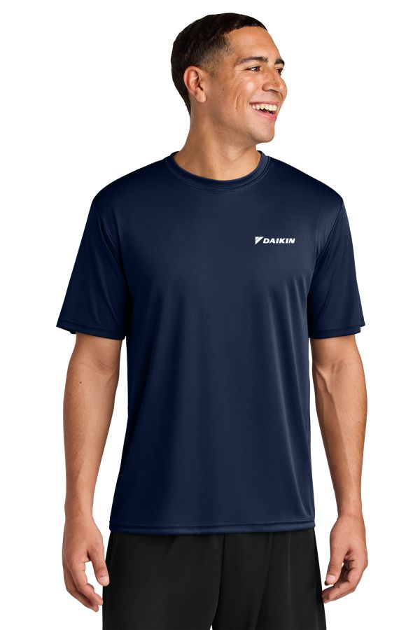 A top choice for sports and exercise, this tee combines a comfortable fit with performance features such as moisture wicking and sun protection.