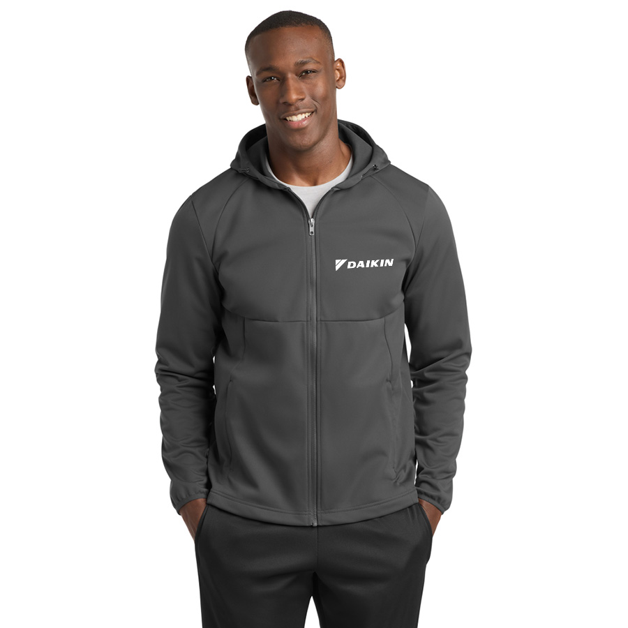 100% polyester knit shell with a durable water-repellent (DWR) coating bonded to a water-resistant film insert and a 100% polyester brushed tricot interior